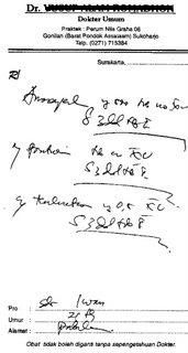 Tiap kali pergi ke dokter kalian pasti melihat tulisan di resep yang hancurnya minta ampun, Maka tercetuslah ‘tulisan dokter’ sebagai sebutan untuk tulisan yang tidak bisa dibaca sampai taraf sama-sekali-mustahil-untuk-dibaca.